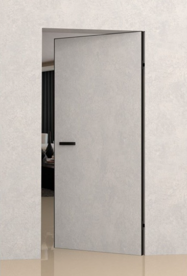Скрытая дверь обратного открывания Инвизибл под покраску в скрытом коробе. Грунтованное покрытие для дальнейшего декорирования краской. Допустимо использование в помещениях с повышенной влажностью. Безопасно для здоровья и окружающей среды. Можно красить или клеить обои. Устанавливается вровень со стеной.