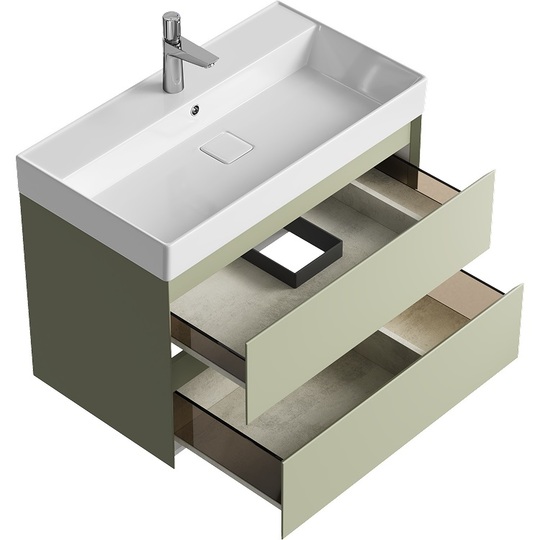 Тумба с раковиной Aqwella Geometria 80 зеленый шалфей 2 ящика