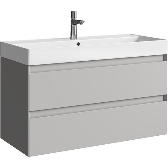 | Тумба с раковиной Aqwella Geometria 100 серый туман 2 ящика |
