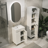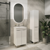 Тумба Виста 50 оснащена двумя распашными дверцами с петлями с доводчиком, обеспечивающими плавное и бесшумное закрывание. В комплект входят хромированные ножки высотой 10 см.