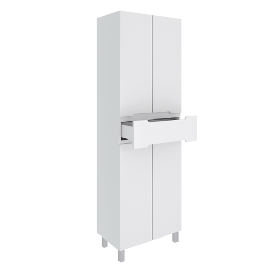 Напольный пенал Olivia оснащен двумя вместительными отделениями с внутренними полками и центральным выдвижным ящиком с механизмом плавного закрывания. Петли с доводчиком на дверцах также обеспечивают мягкое и бесшумное закрывание.