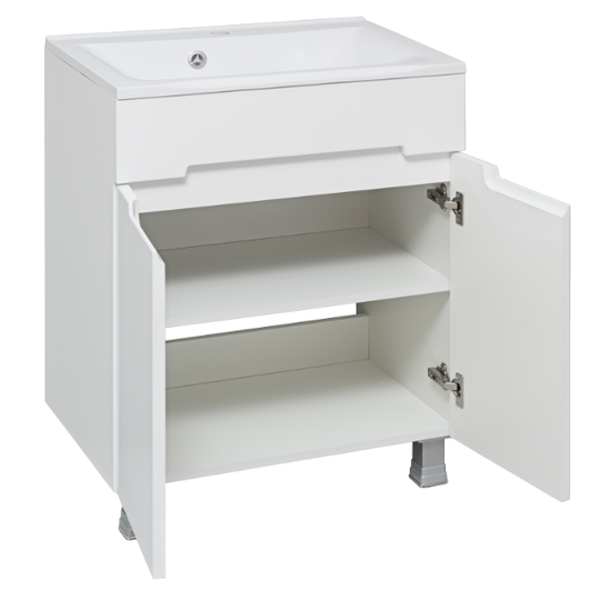 Тумба Olivia 65 оснащена двумя распашными дверцами и одной встроенной полкой. Дверцы легко открываются благодаря удобному вырезу на фасадах.