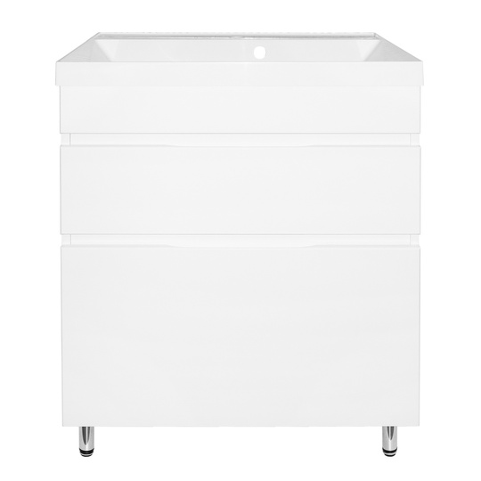 Тумба Эстима 70/2Н оснащена двумя выдвижными ящиками на доводчиках скрытого монтажа. Установлена на хромированные ножки. Корпус изготовлен из ЛДСП, фасады МДФ толщиной 16 мм. Корпус и фасады производства Kronospan. Бока и фасады крашеные итальянской эмалью.