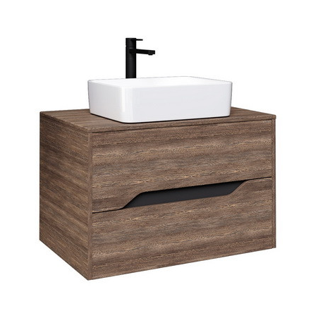 Тумба Лайф 80 оснащена двумя вместительными выдвижными ящиками с врезными ручками. Ящики укомплектованы шариковыми направляющими скрытого монтажа с доводчиками. Верхний ящик с защитой от конденсата с органайзером для хранения мелких предметов. Тумба выполнена из влагостойких материалов, устойчивых к перепадам температуры и высокой влажности. Корпус и фасады - МДФ в пленке "винтажное дерево темное", вставки из ЛДСП "графит".