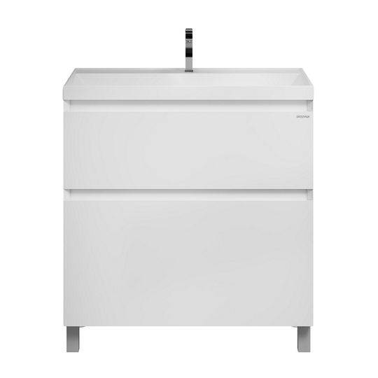 Тумба Меркадо 80 - стильное и функциональное решение для интерьеров в скандинавском и современном стиле. Корпус и фасады выполнены из МДФ в белой матовой краске. Фасады с точным запилом под 45° на торцах, что исключает видимую кромку и позволяет обходиться без ручек, создавая лаконичный и минималистичный дизайн. Два вместительных ящика изготовлены из ЛДСП «Дуб Эльвезия» и оснащены направляющими скрытого монтажа с доводчиком, обеспечивающими плавное и бесшумное закрывание. Тумба установлена на хромированные ножки высотой 10 см, а для надежного крепления предусмотрены подвесы в комплекте.