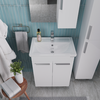 Тумба Grossman Нео 50 оснащена двумя распашными дверцами, за которыми спрятана одна полочка. Петли с доводчиками гарантируют плавное и бесшумное закрывание. На фасадах удобно расположены стильные алюминиевые ручки в матовом хромированном цвете. Корпус и фасады изготовлены из МДФ с трехслойной краской, устойчивой к механическим воздействиям, перепадам температур и высокой влажности. Полочки из ЛДСП. Ножки тумбы прямоугольные, регулируются по высоте.