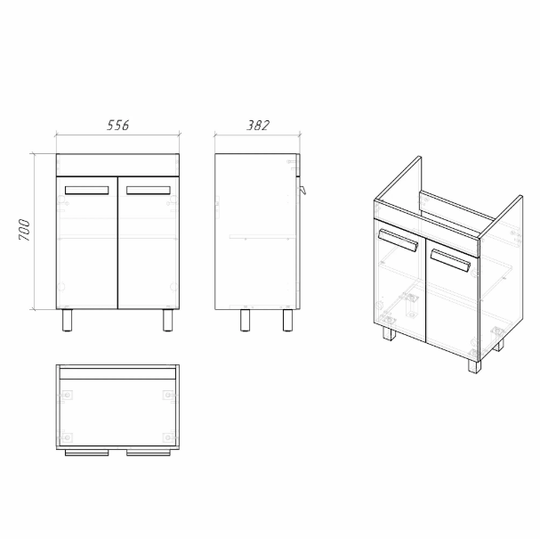 Тумба Grossman Нео 60 оснащена двумя распашными дверцами, за которыми спрятана одна полочка. Петли с доводчиками гарантируют плавное и бесшумное закрывание. На фасадах удобно расположены стильные алюминиевые ручки в матовом хромированном цвете. Корпус и фасады изготовлены из МДФ с трехслойной краской, устойчивой к механическим воздействиям, перепадам температур и высокой влажности. Полочки из ЛДСП. Ножки тумбы прямоугольные, регулируются по высоте.