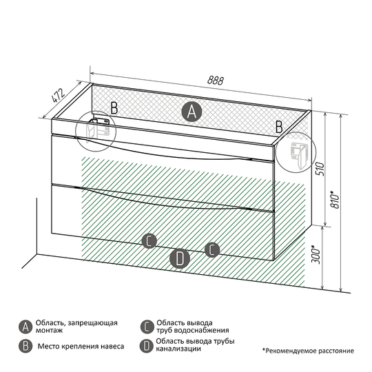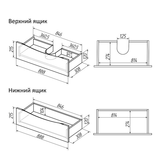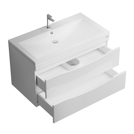 Тумба Grossman Виста 90 оснащена двумя вместительными ящиками с интегрированными ручками и скрытыми направляющими с доводчиком.