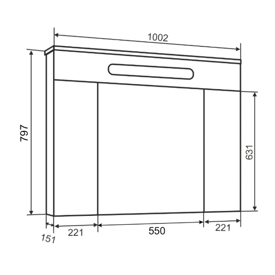 Зеркало-шкаф Olivia 100 оснащен тремя распашными зеркальными дверцами. Блок розетка/выключатель расположен внутри шкафа. Полки под хранение обеспечивают порядок внутри. Петли на дверцах со встроенным доводчиком.