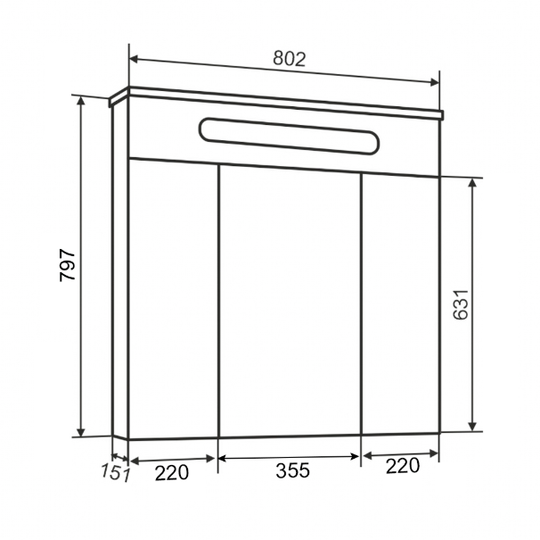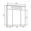 Зеркало-шкаф Olivia 80 оснащен тремя распашными зеркальными дверцами. Блок розетка/выключатель расположен внутри шкафа. Полки под хранение обеспечивают порядок внутри. Петли на дверцах со встроенным доводчиком.